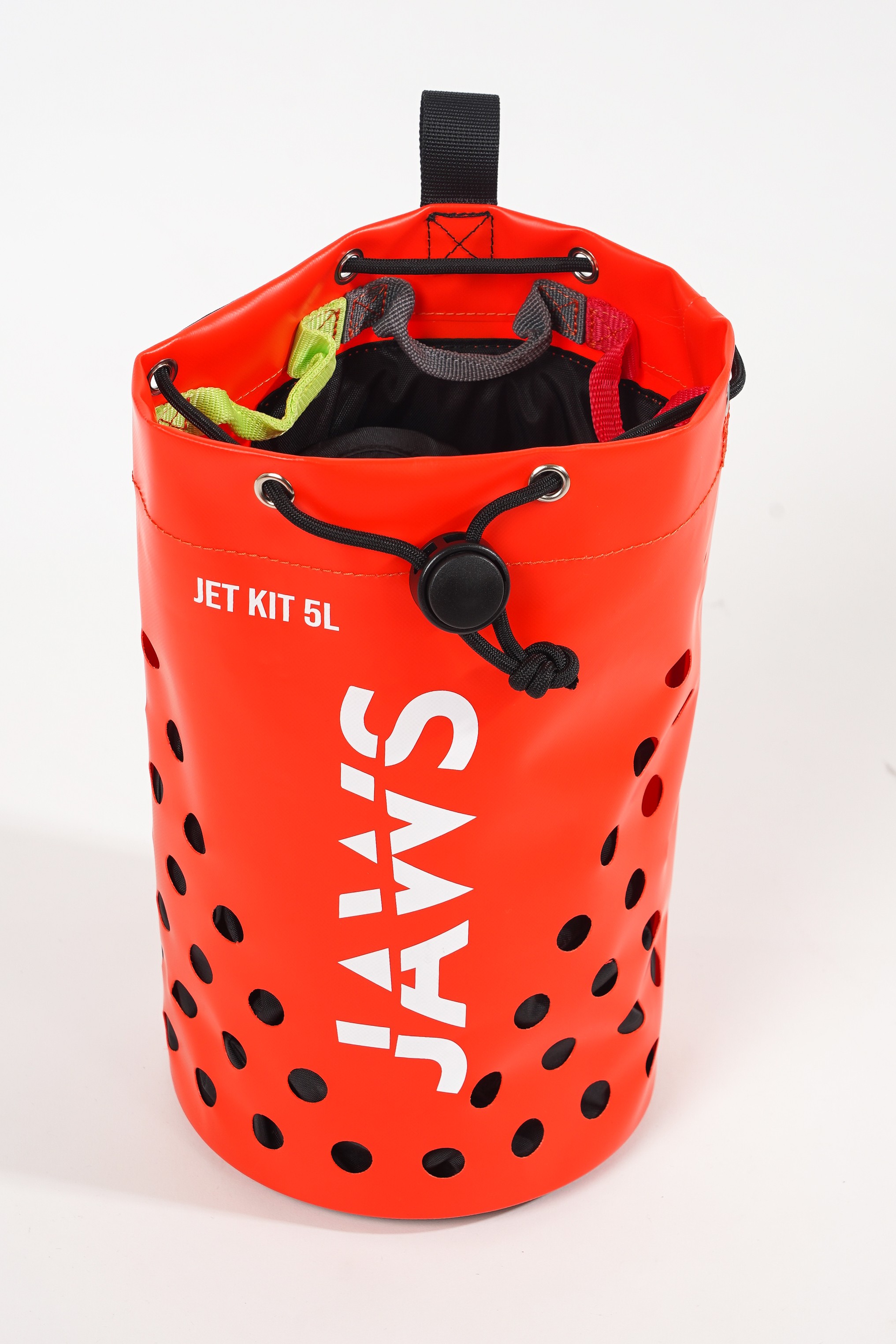 - Grâce à sa parfaite flottabilité et sa couleur vive rouge-orangée JAWS, vous gardez votre sac en visuel dans les passages bouillonnants, les portions en nage et les jetés en vasque.
